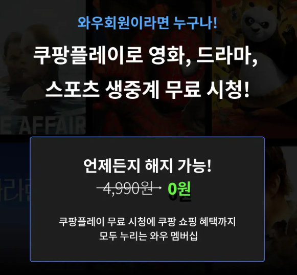 따라서, 이미 쿠팡 와우 회원인 분들은 추가 비용 없이 쿠팡플레이를 즐길 수 있습니다. 아직 회원이 아니신 분들도 쿠팡 와우 멤버십에 가입하시면 즉시 쿠팡플레이를 이용하실 수 있습니다.